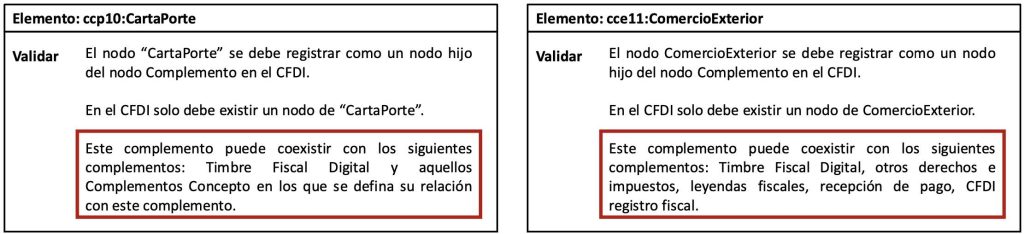 Los complementos de Carta Porte y Comercio Exterior no pueden coexistir, es decir cuando se trasladen mercancías de manera internacional deberán realizarse dos CFDI.